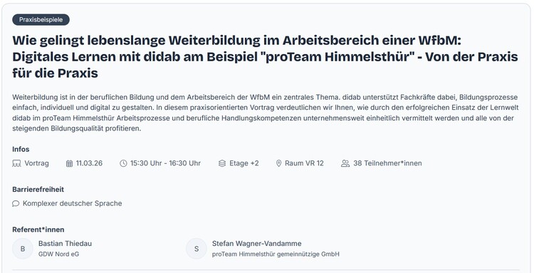 Die Lernplattform didab bietet vielseitige Anwendungsmöglichkeiten in den unterschiedlichen Einrichtungen und Bereichen der Behindertenhilfe. In diesem Online-Forum steht die Frage im Vordergund, welche Anwendungsmöglichkeiten sich in der methodischen Kombination aus didab-classic und dem Blended-Learning -Format ergeben.
