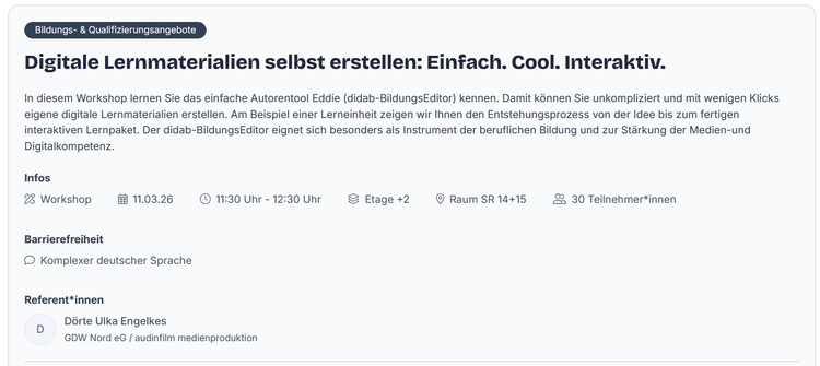 Wie lassen sich zum Beispiel existierende Unterweisungen und Materialien sinnvoll einbinden oder welche Chancen bietet der Ansatz für die aktive Mitwirkung der Lernenden und welche Rolle kann dabei didab-Meine Einrichtung als Schnittstelle der gesamten digitalen und klassischen Lernmaterialien spielen?